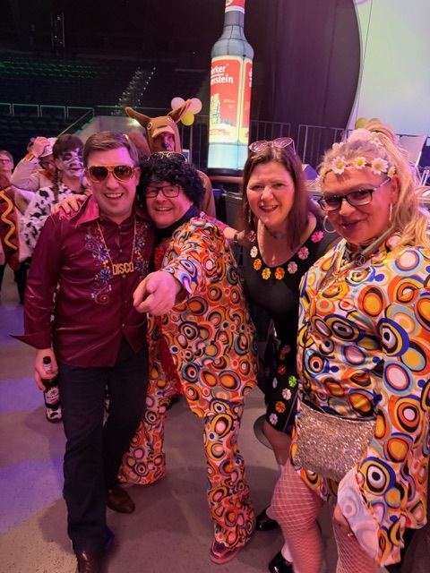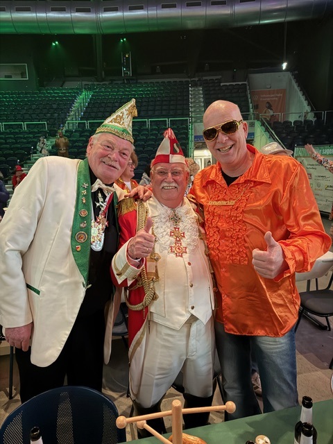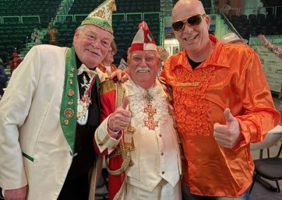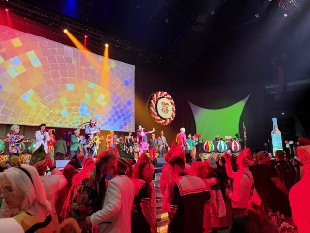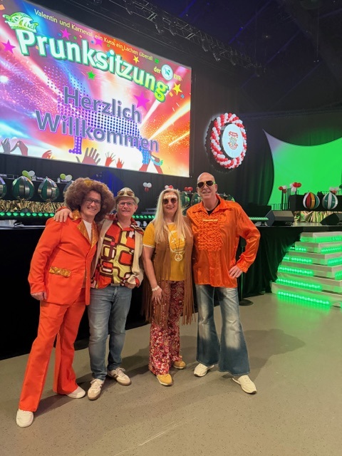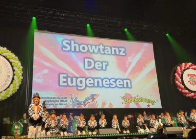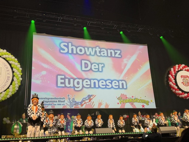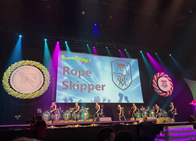 Die Karnevalsvereinigung der Rheinländer hatte am 14.02.2026 ein außergewöhnliches Showprogramm organisiert. Neben den hervorragenden Tanzvorführungen der Tanzgarden, der „Lady in Black“ und den „Eugenesen“ ganz in schwarz-weiß mit leuchtend roten Haaren und nach dem Auftritt der Burgsänger stellte Prinz Andreas II. gemeinsam mit den Löwensöhnen sein Gesangstalent unter Beweis. Während des kurzweiligen Programms lieferten die „Rope Skipper“ eine atemberaubende Show an kunstvollen Sprüngen mit ihren Springseilen.
